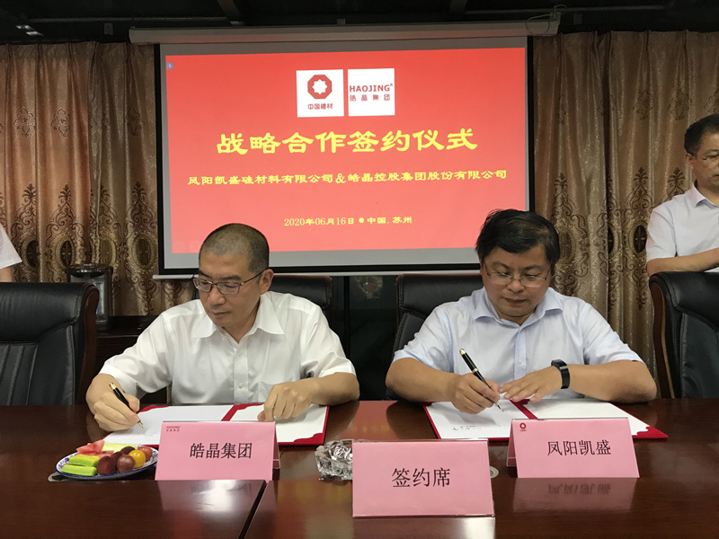 On June 16, 2020, Haojing Holdings Group Co., Ltd. (hereinafter referred to as Haojing Group) and Fengyang Kaisheng Silicon Materials Co., Ltd. (hereinafter referred to as Fengyang Kaisheng) signed a strategic cooperation agreement in Suzhou. Haojing Group Chairman Lin Jiang, President Ni Le, and Vice President An Jishen, along with core members of Haojing, witnessed the signing ceremony with Fengyang Kaisheng General Manager Cao Yanping, Sales Director Ma Shilai, and Sales Manager Guo Youli.