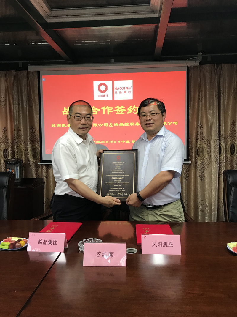 On June 16, 2020, Haojing Holdings Group Co., Ltd. (hereinafter referred to as Haojing Group) and Fengyang Kaisheng Silicon Materials Co., Ltd. (hereinafter referred to as Fengyang Kaisheng) signed a strategic cooperation agreement in Suzhou. Lin Jiang, Chairman of the Board of Haojing Group, Ni Le, President, and An Jishen, Vice President, along with key members of Haojing, witnessed the signing ceremony with Cao Yanping, General Manager of Fengyang Kaisheng, Ma Shilai, Sales Director, and Guo Youli, Sales Manager.